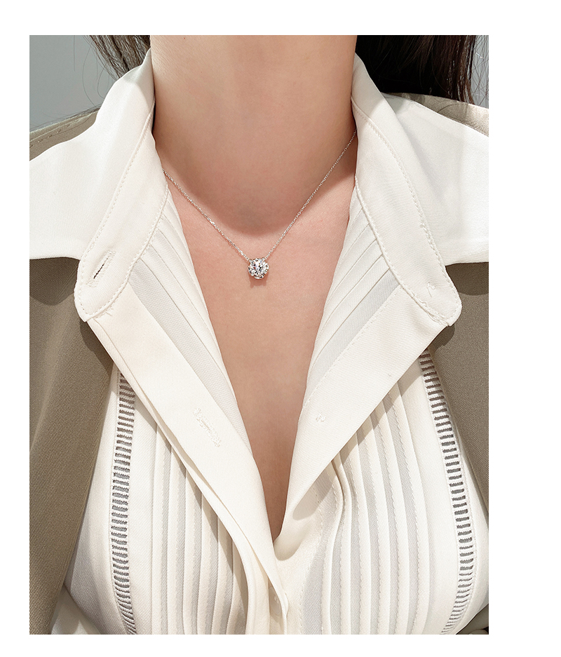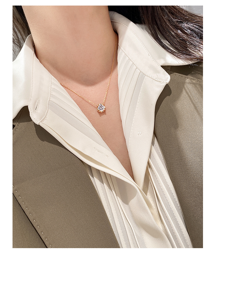 Girl's Rotating Clavicle Chain Artificial Sterling Silver Single Diamond Pendant