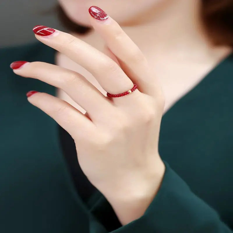 Handmade natural ruby cut bead ring with 18K gold beads Fashion Talisman Gift Wedding Finger Beautiful Diy Party Accessories Man