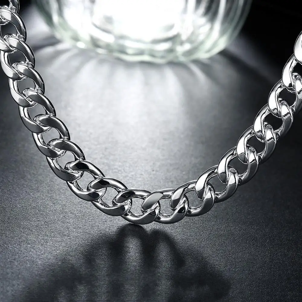 Hot new 925 sterling Silver classic 10MM Square Chain Bracelets necklace Jewelry set for men 20/22/24 inch Fashion Party Gifts