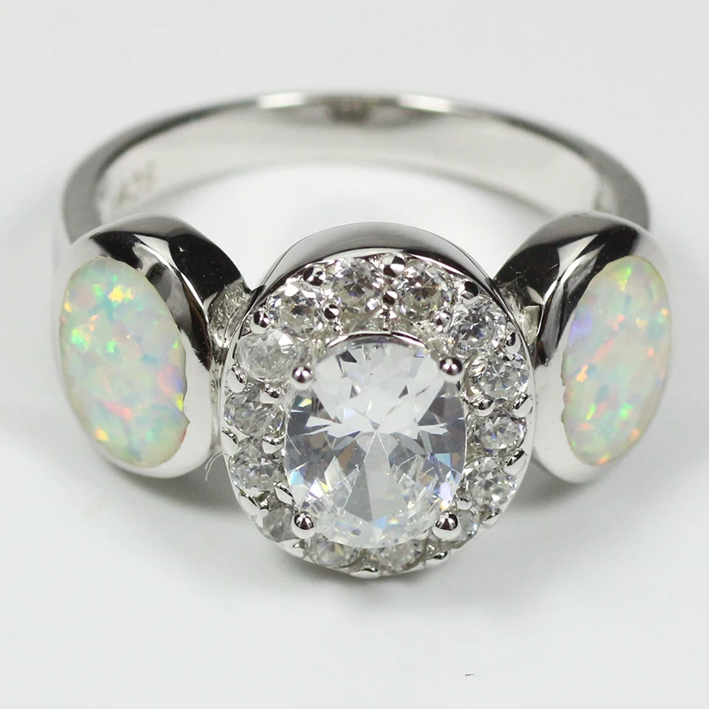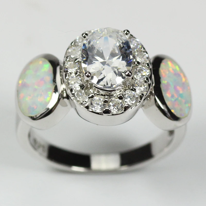 white zircon fire opal women 925 sterling silver fashion jewelry ring size 6,7,8,9,10