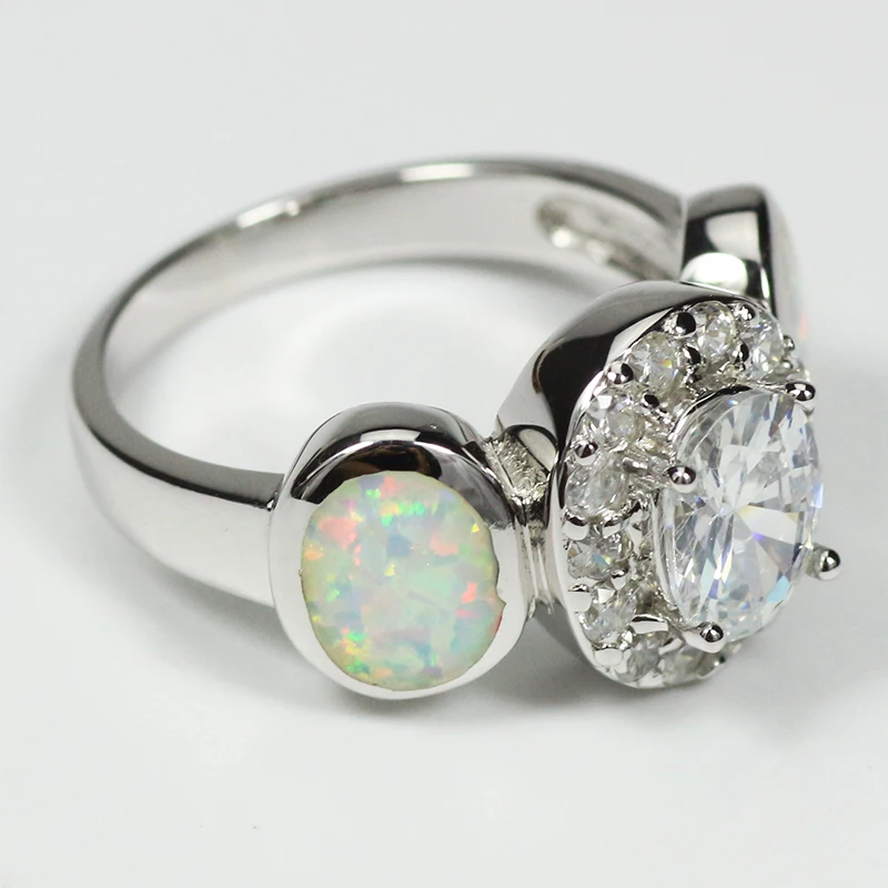 JLR-1571 White Fire Women 925 Sterling Silver Zircon & Opal Fashion Jewelry Ring