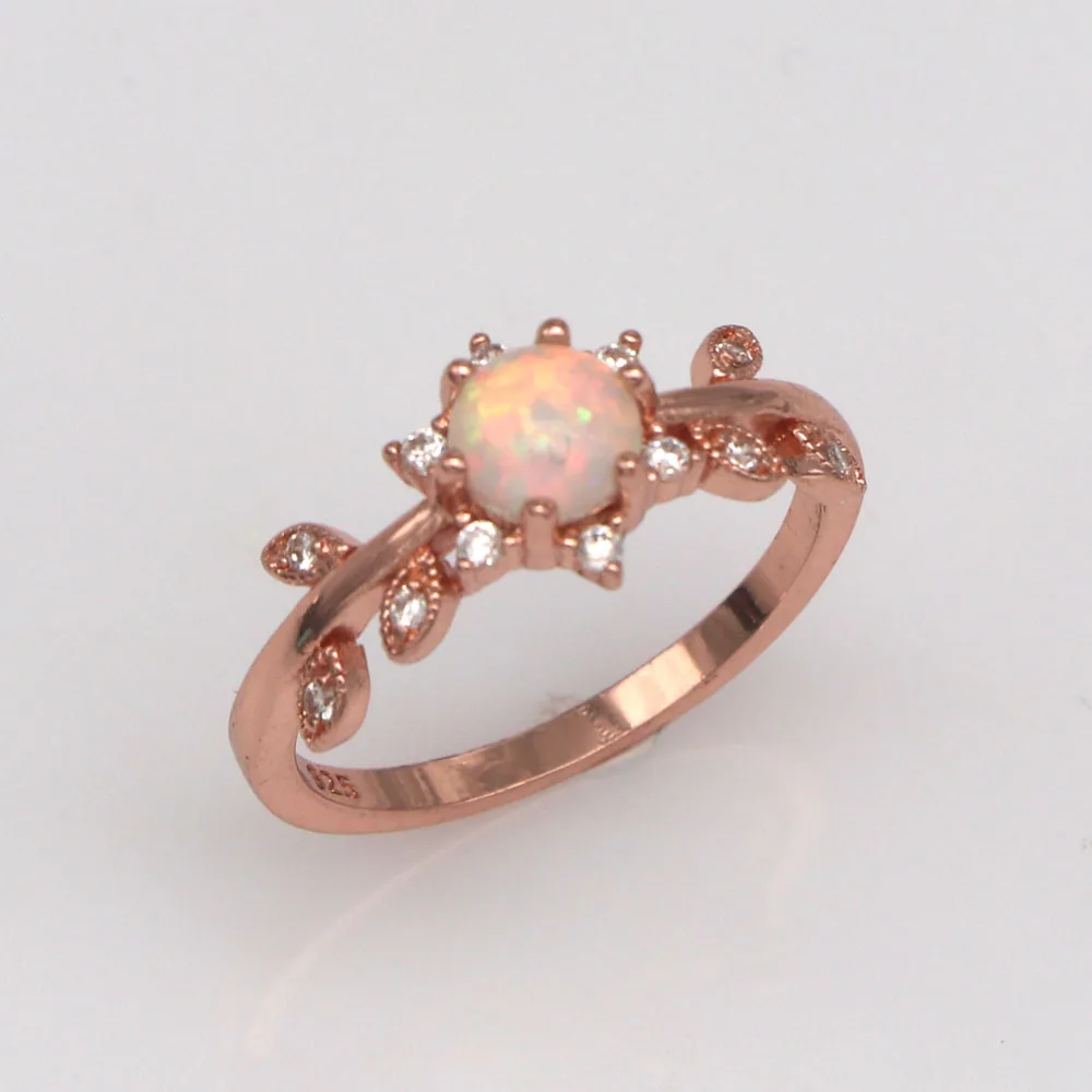JLR052 Wholesale Prices Exquisite Girl Flower Branches Rose Gold Fire Opal & Zircon Rings for Women Fashion Jewelry