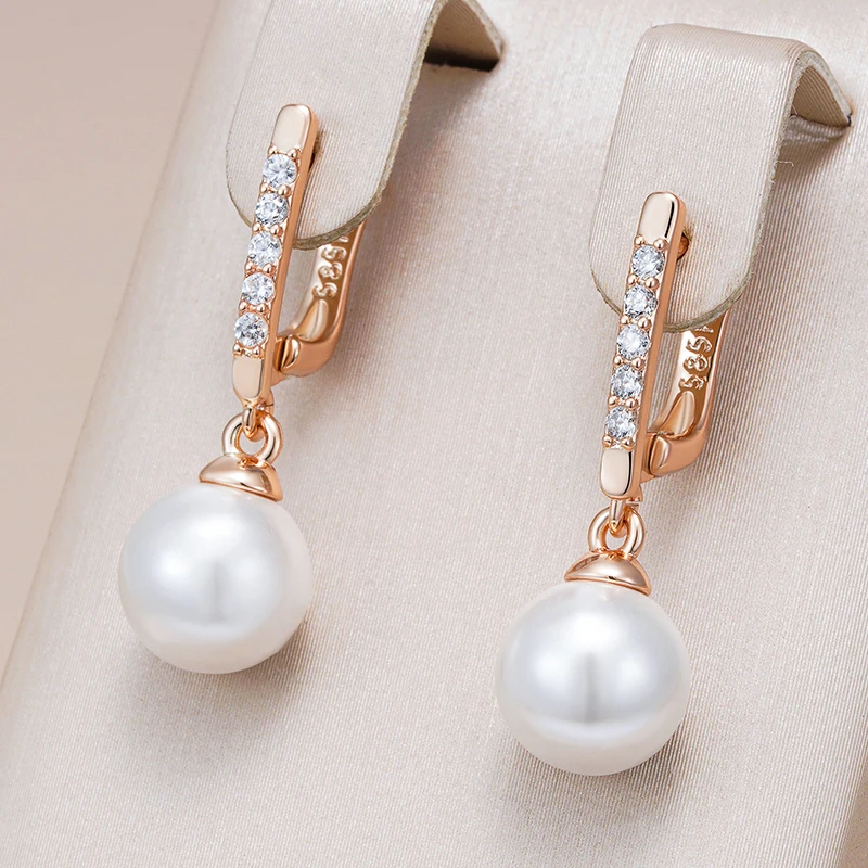 Kinel Luxury 585 Rose Gold Color Pearl English Earrings for Women Unique Natural Zircon Accessories Bridal Wedding Fine Jewelry