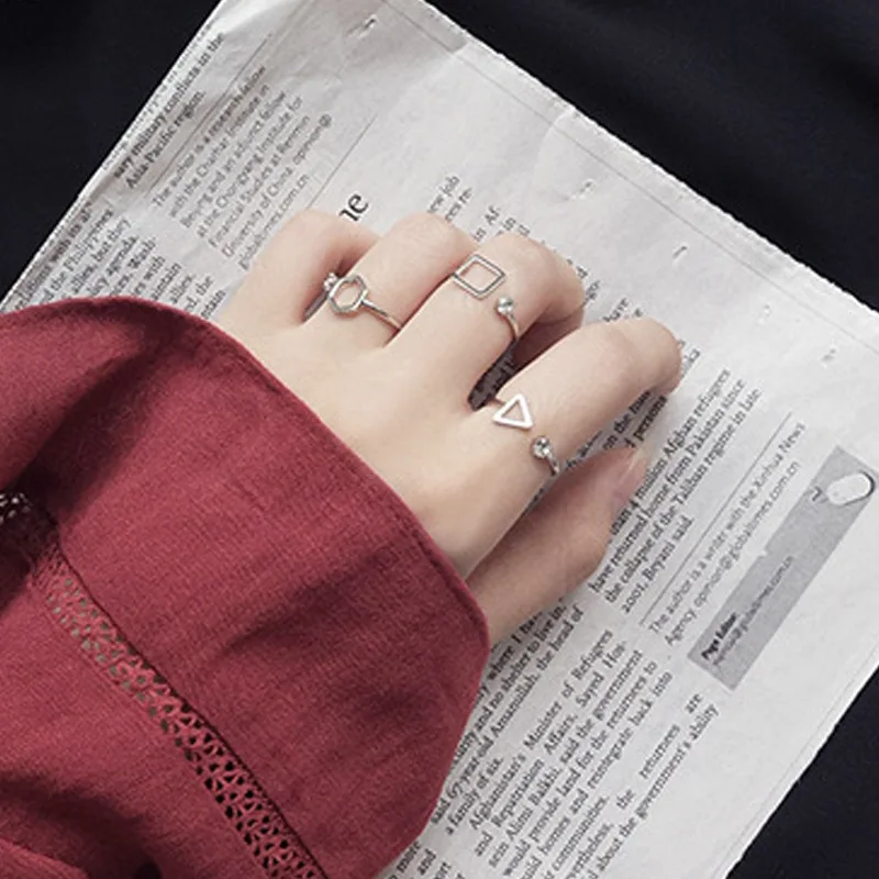 Korean Star With The Same Paragraph Black Matte Matte Wide Face Multi-layer Ring Personality Wild Fashion Three-piece Suit