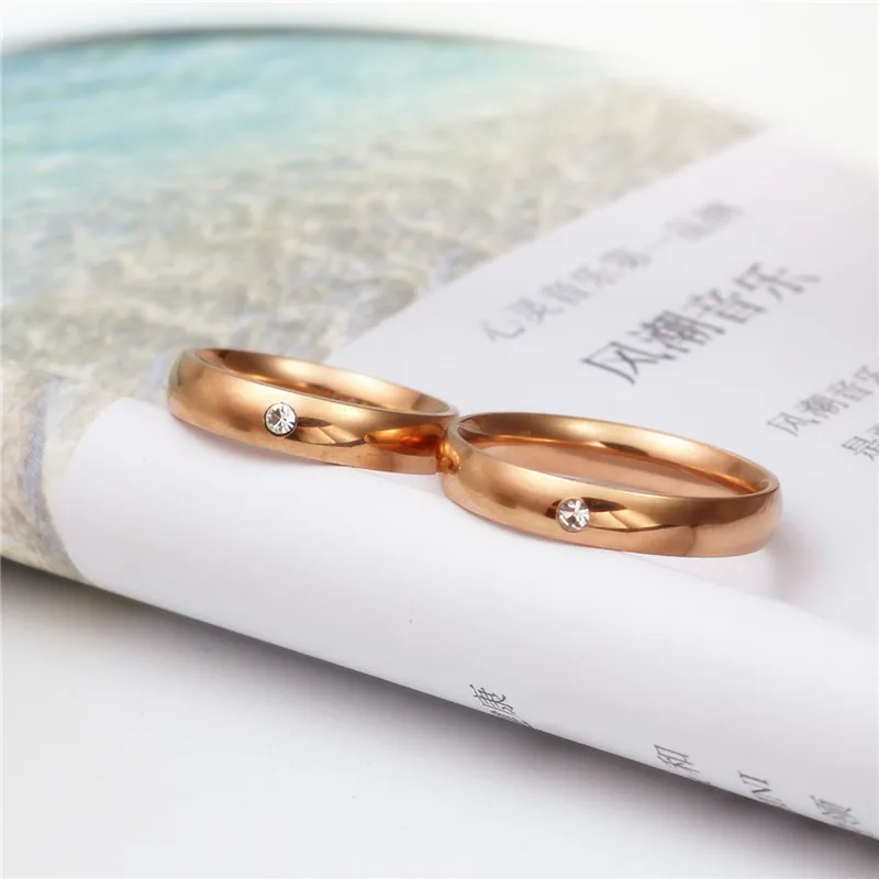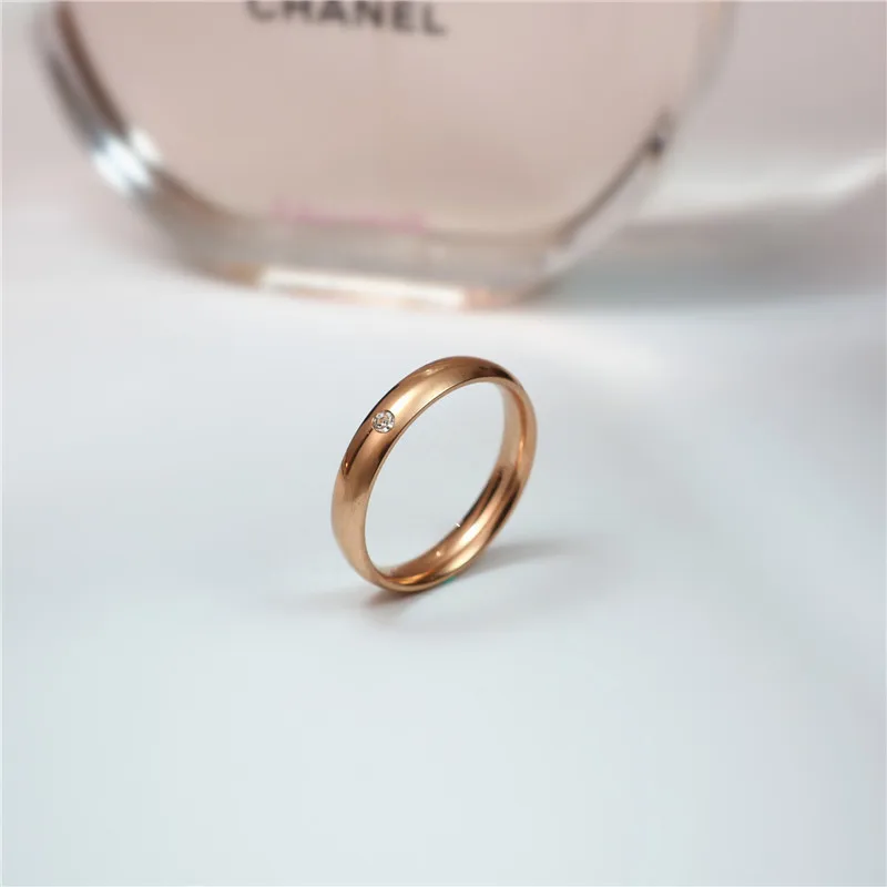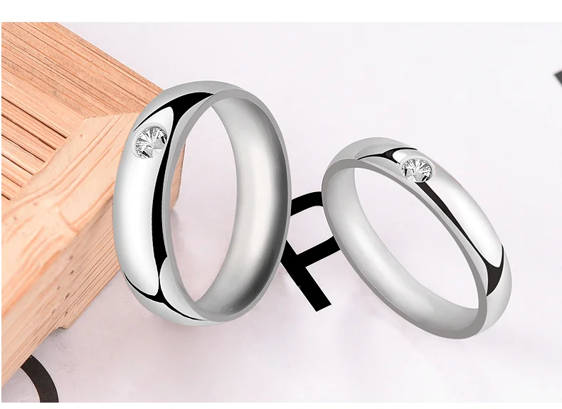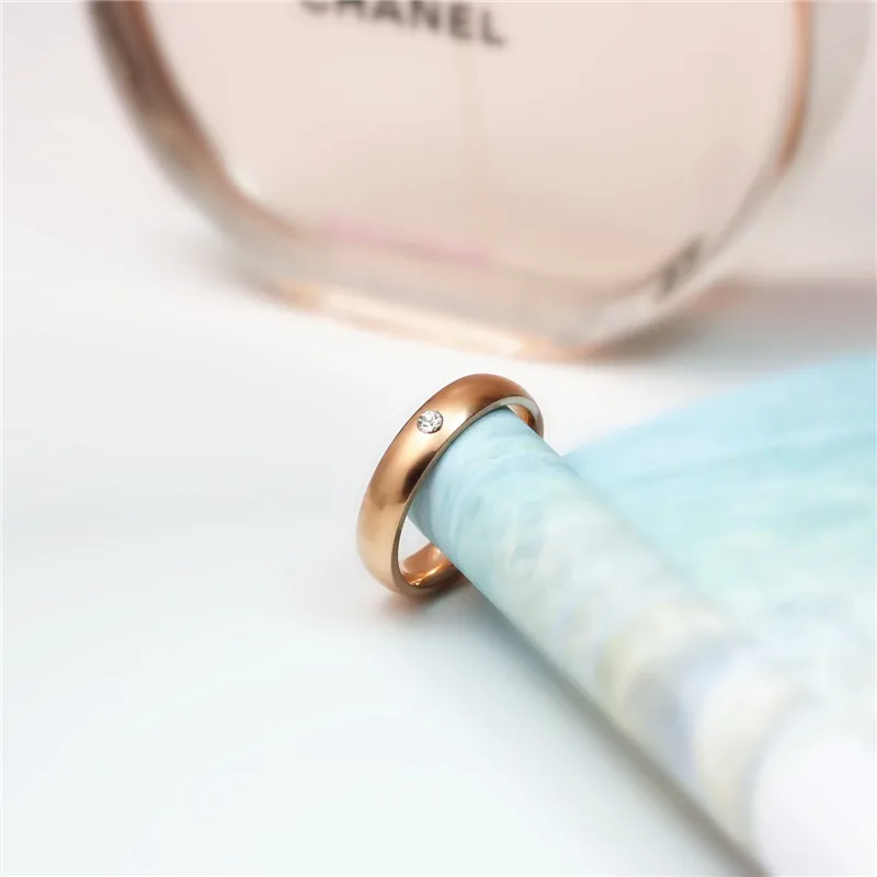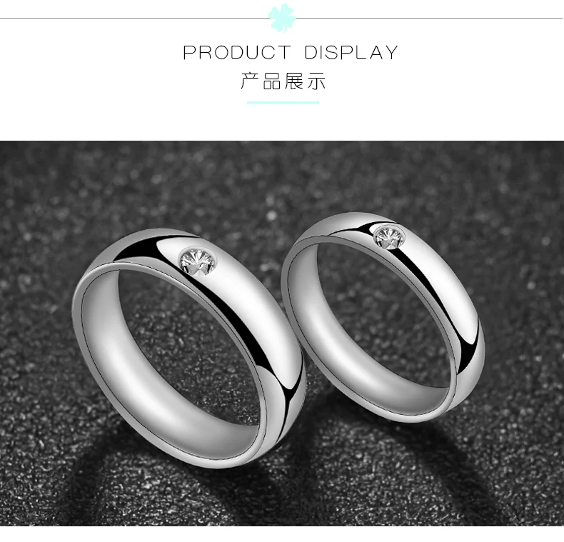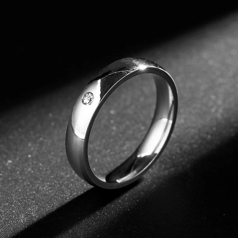 MOREDEAR Never Fade 4mm Stainless Steel Solid Zircon Ring Engagement Wedding Charm Rings for Men and Women