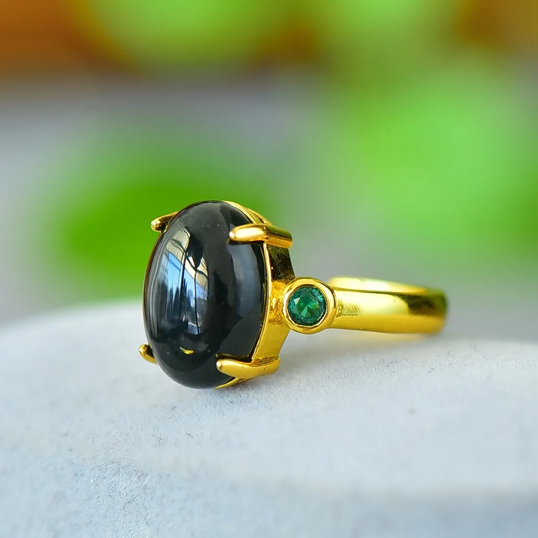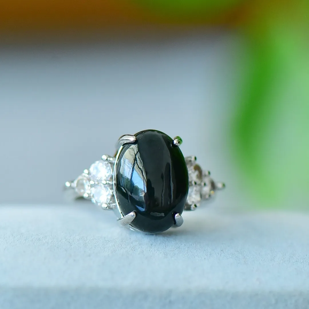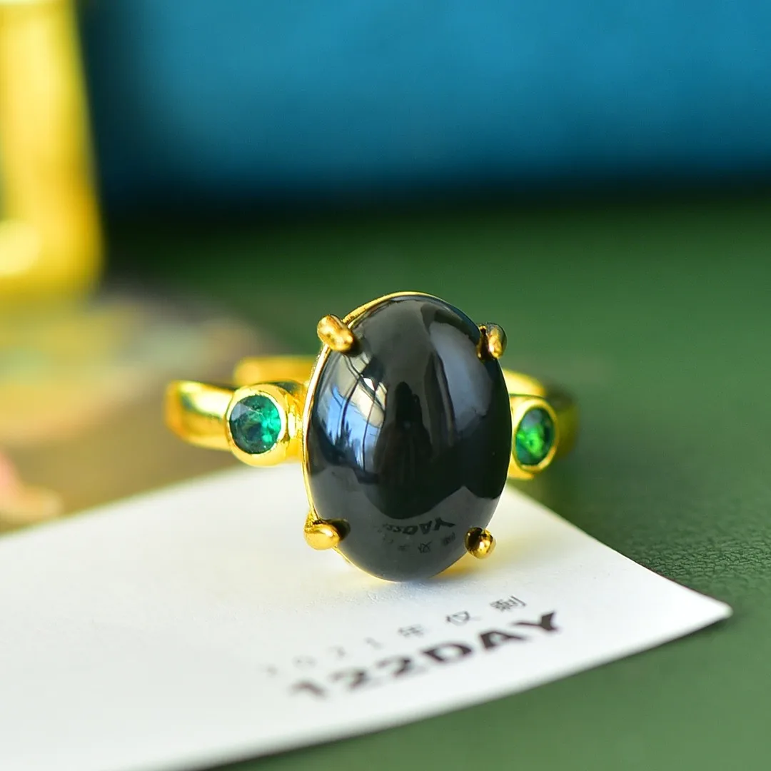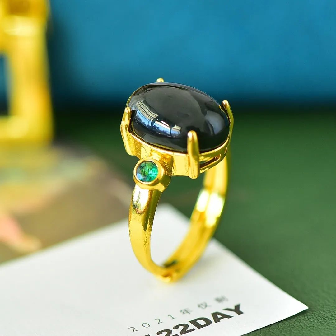 Natural Black Jade Ring Women Healing Gemstone Fine Jewelry Genuine Hetian Jades Nephrite Green Zircon Jadeite Rings Adjustable