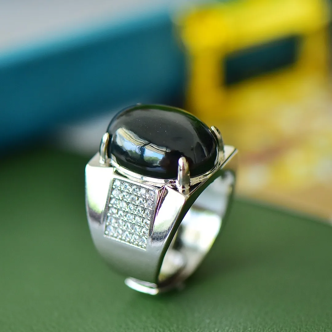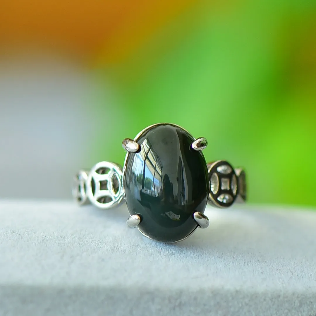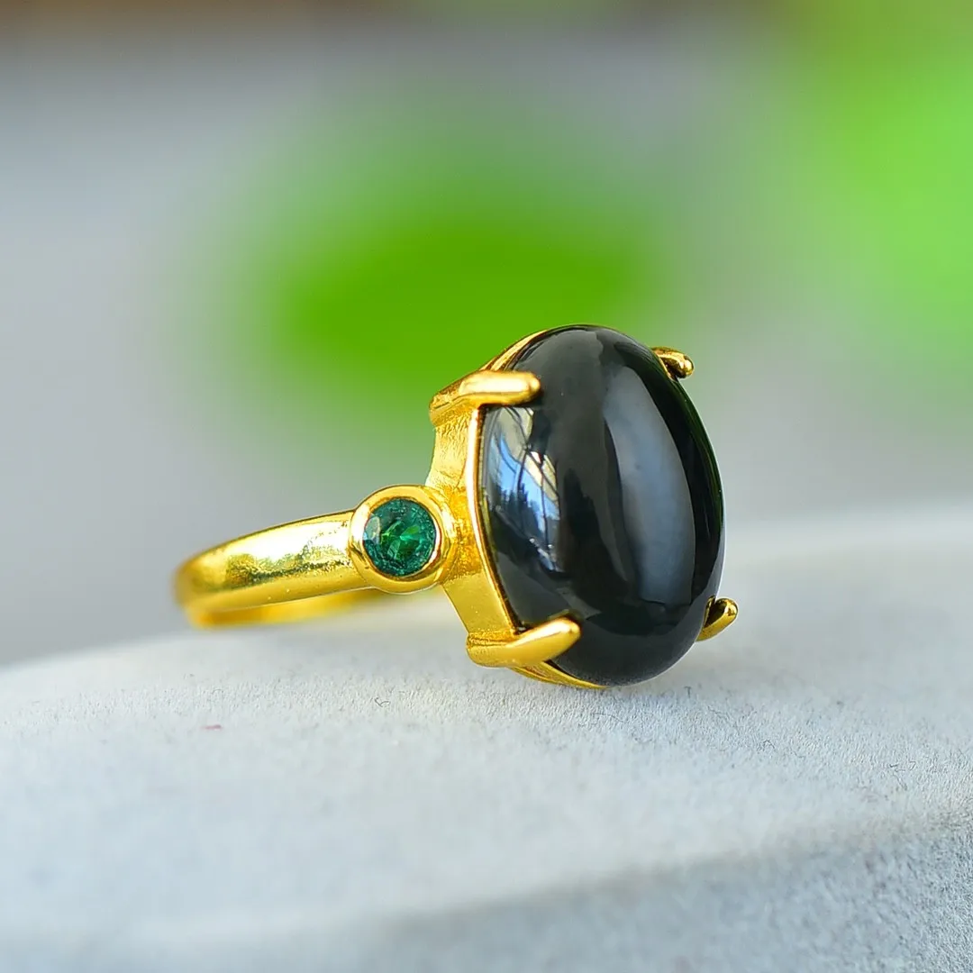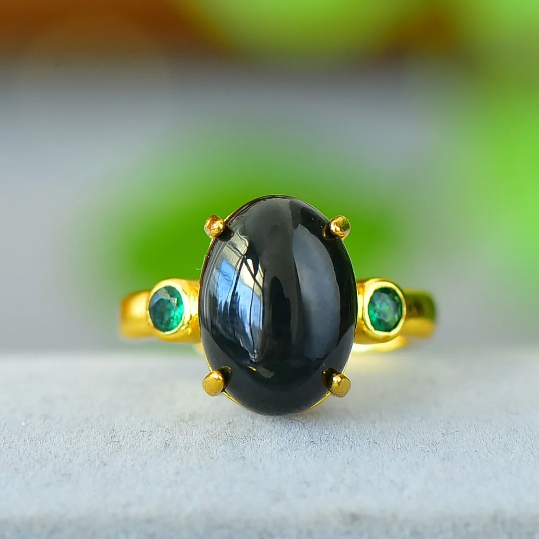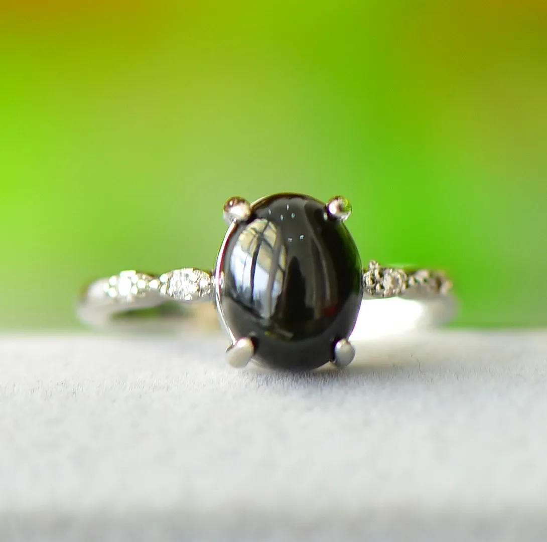 Natural Black Jade Ring Women Healing Gemstone Fine Jewelry Genuine Hetian Jades Nephrite Green Zircon Jadeite Rings Adjustable