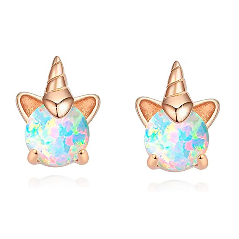 New Cute Unicorn Stud Earrings for Little Girl Kids Crystal Cat Butterfly Rainbow Heart Star Earring Christmas Gift Jewelry