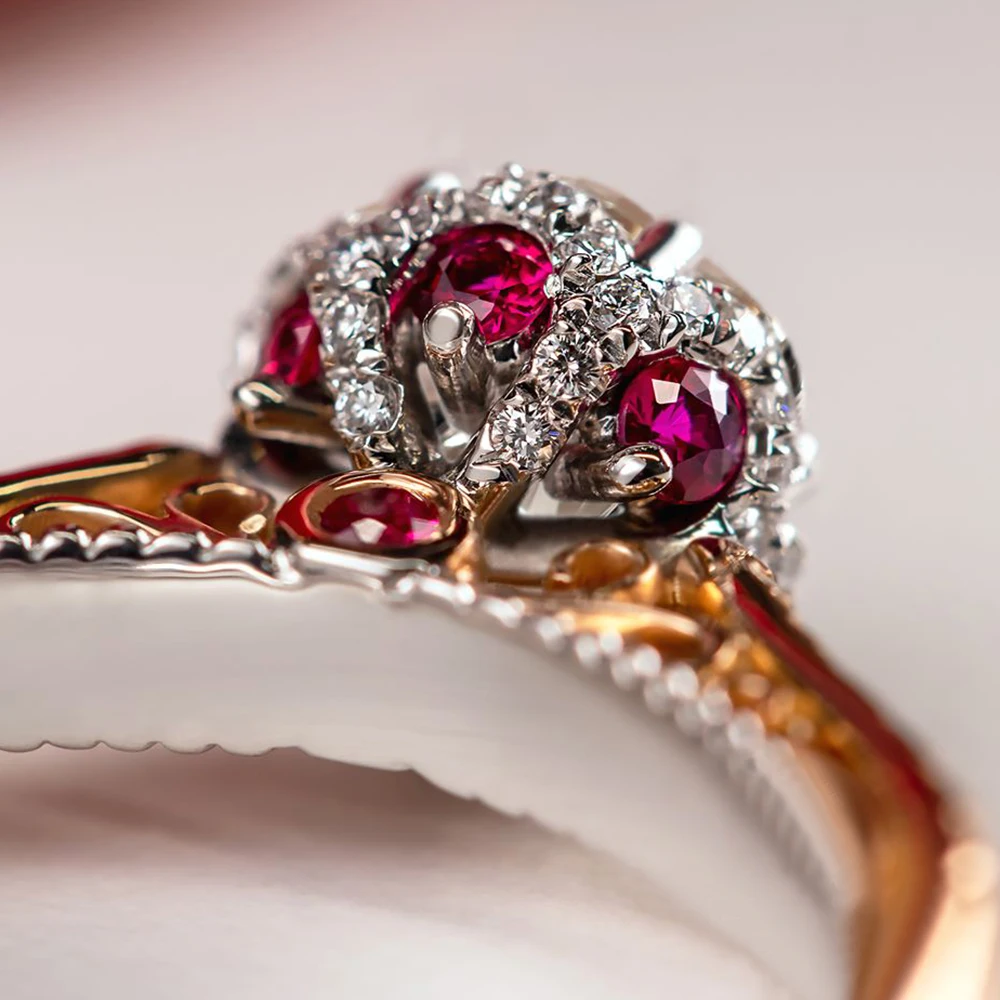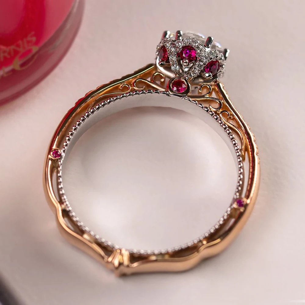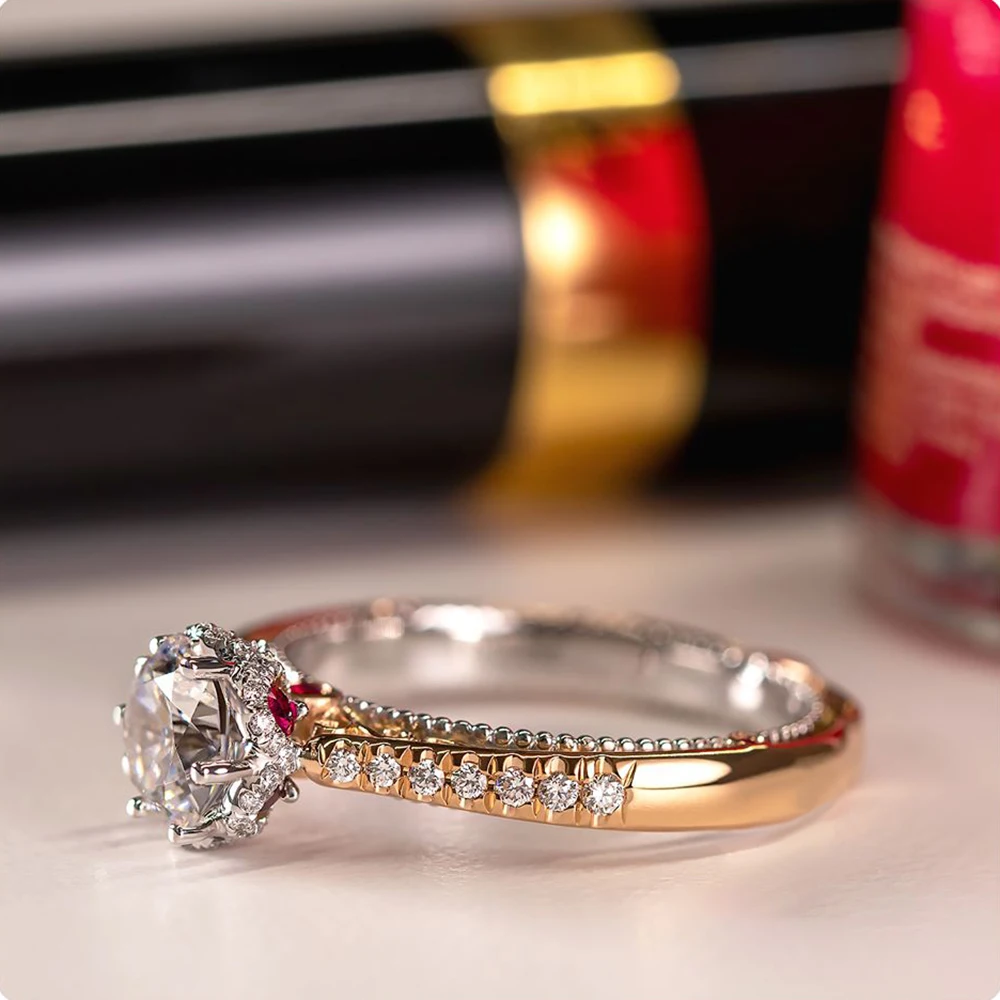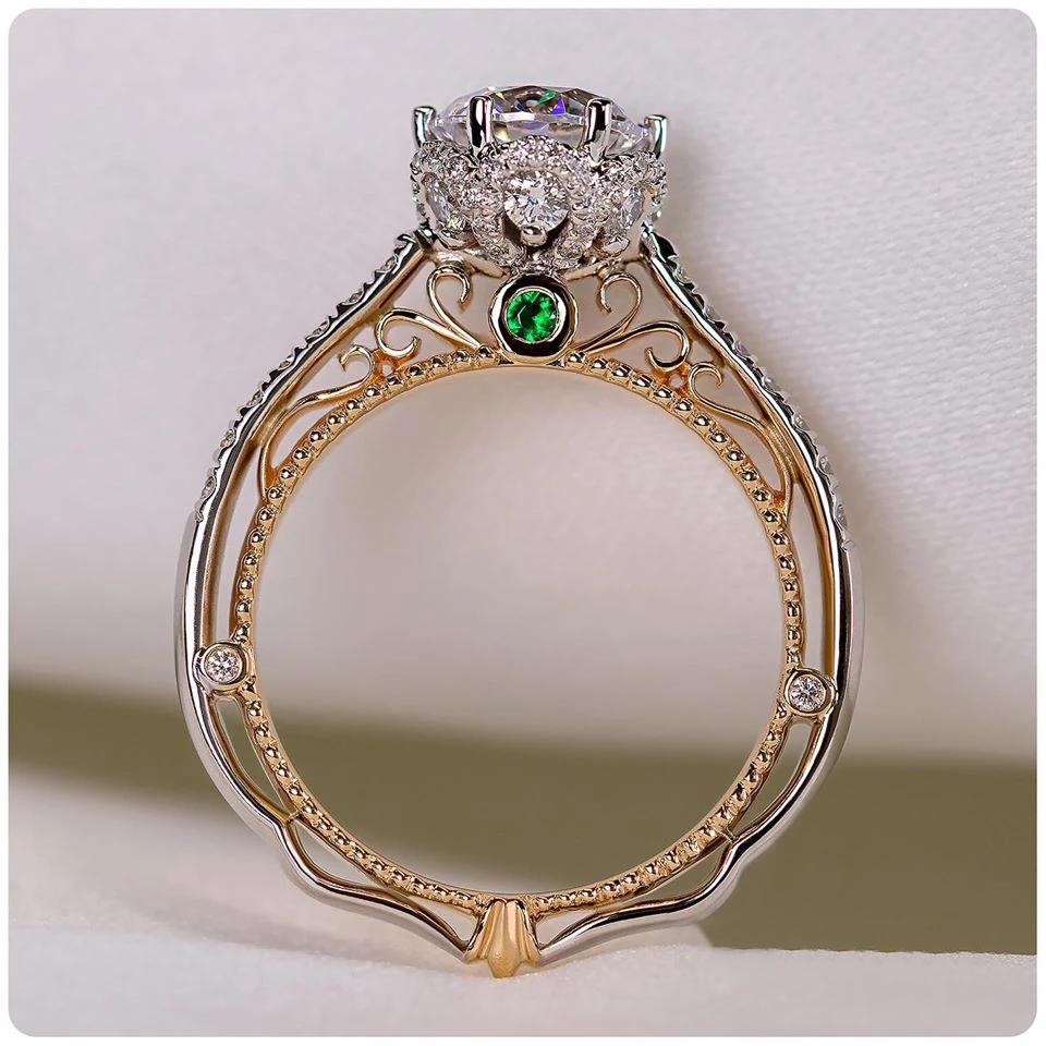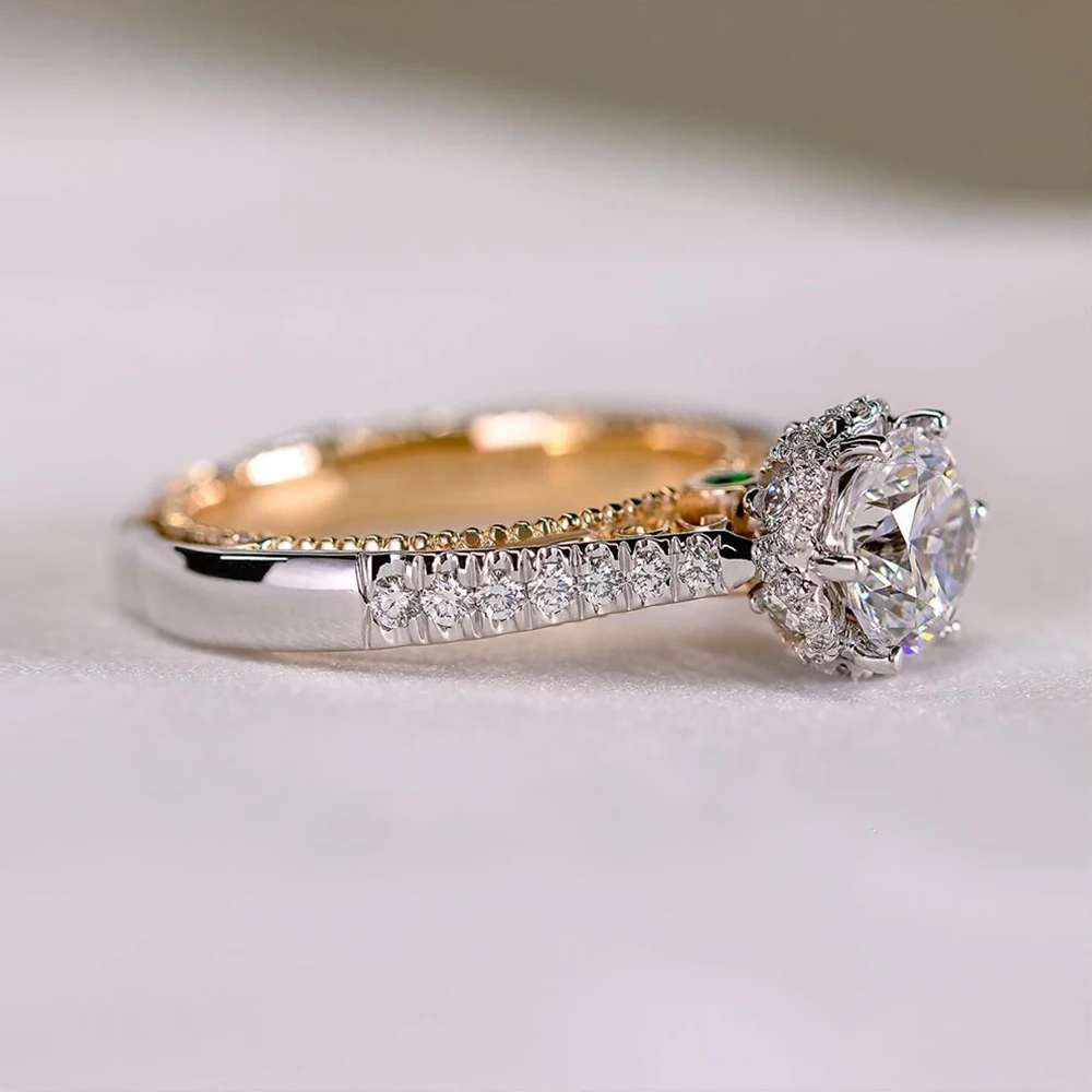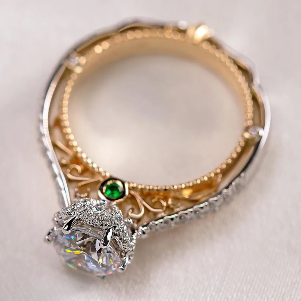 New Luxury Classic 6 Claw Crystal Zircon Ring Women Wedding Jewelry Unique Two Tone Design Elegant Female Engagement Hot