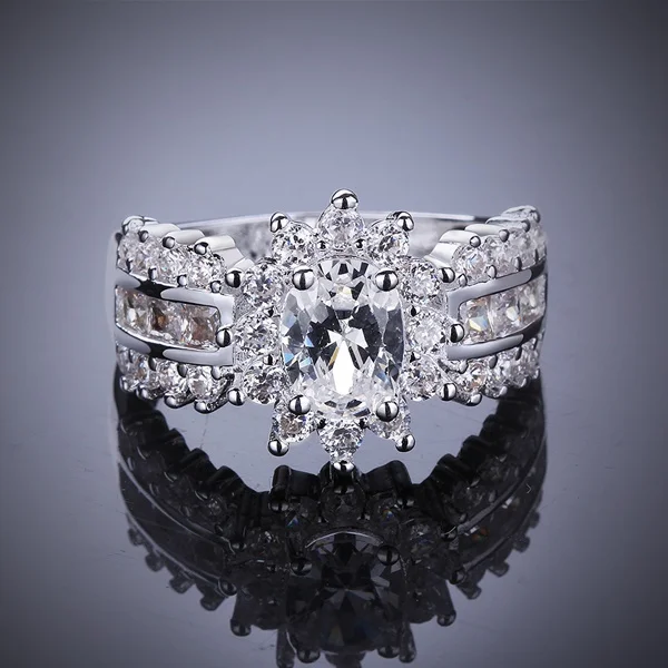 noble crystal stone women 925 sterling silver Ring pretty nice wedding charm beautiful fashion Silver color Jewelry