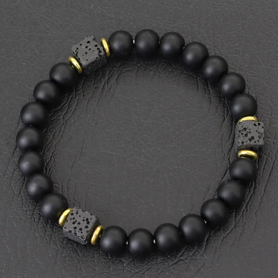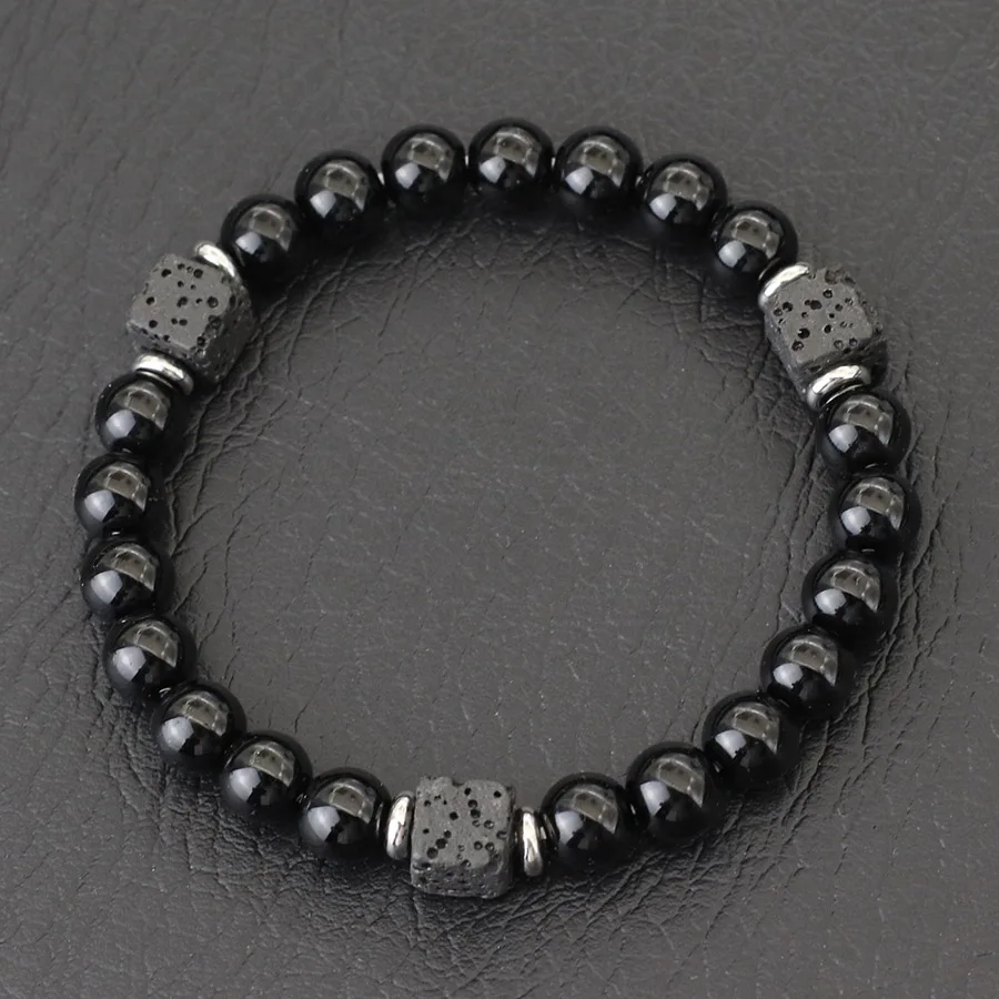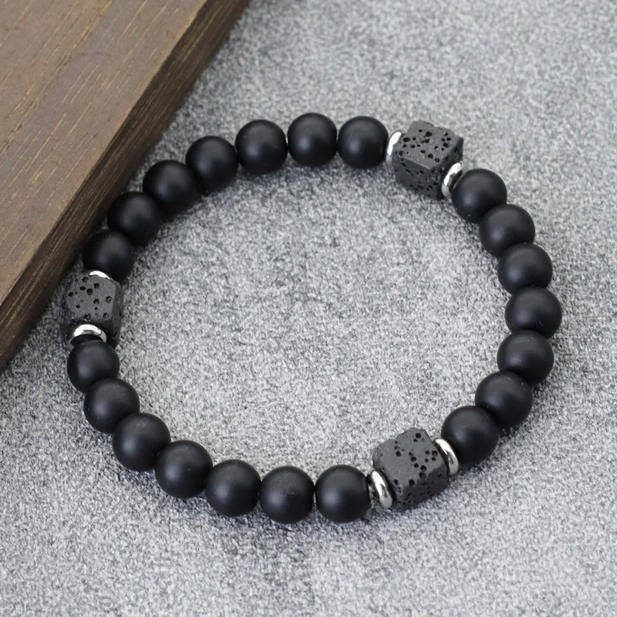 Premium Gemstone Stretch Beaded Bracelet For Men Outdoors Sports Lava Rock Meditation Yoga Braslet Armband Herren accessoris