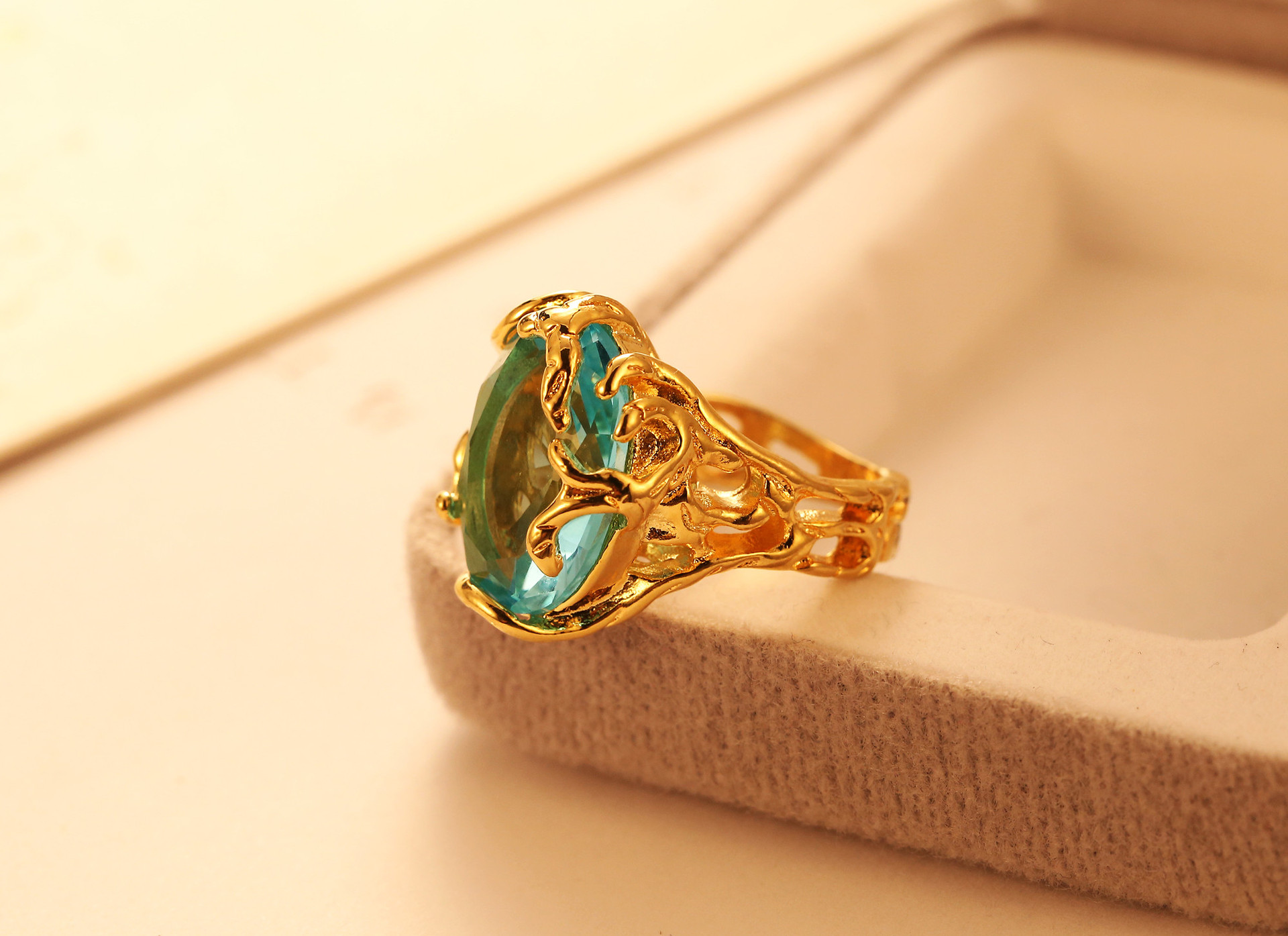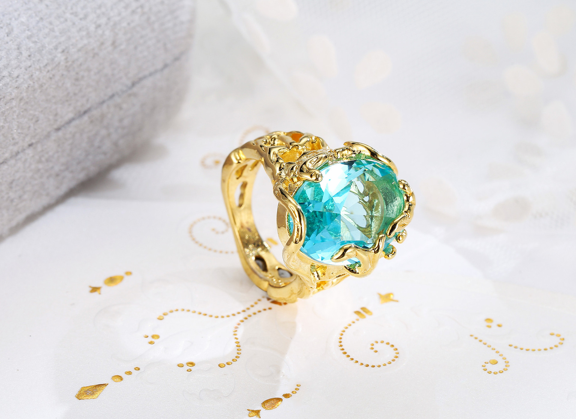 Real 18K Yellow Gold color Sapphire Topaz Jewelry Ring for men Valentine Gift Rings Bague Sapphire Ring Gemstone Jewelry