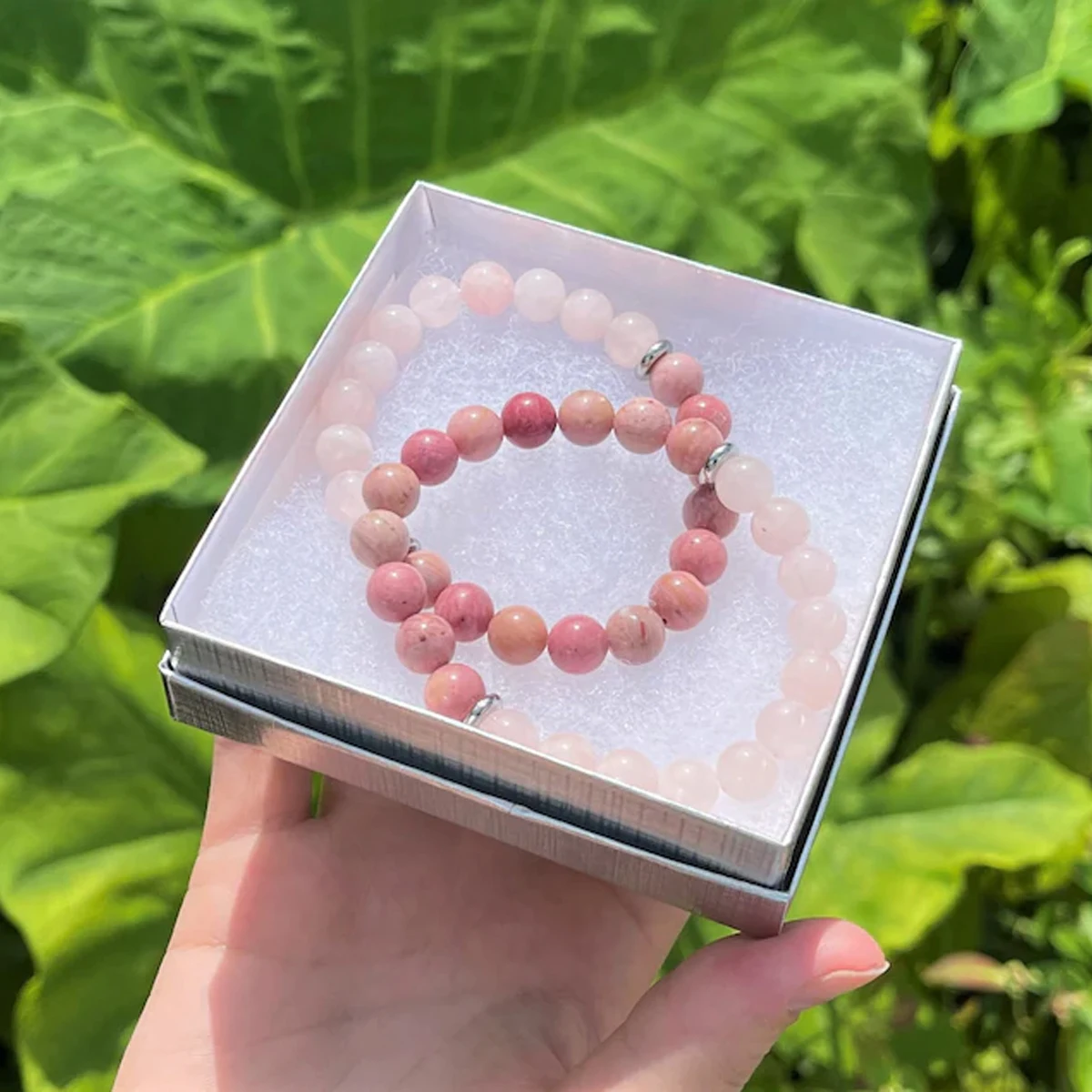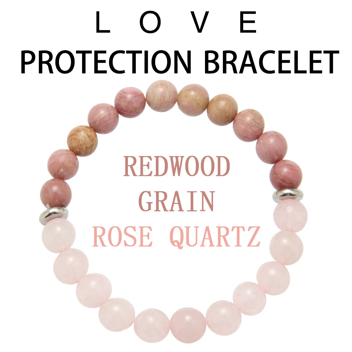 Rose Quartz & Rhodonite Combo Bead Bracelet: 8 mm Round Crystals (Premium Grade Gemstone Bracelet, Rose Quartz Bracelet, Rhodoni