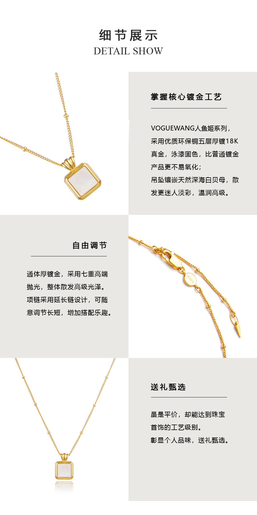 Square Pendant Sterling Silver Plated 18K Natural White Shell