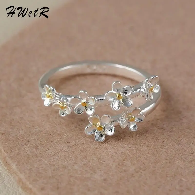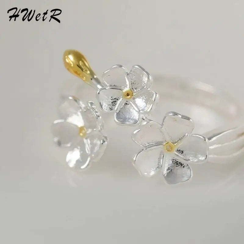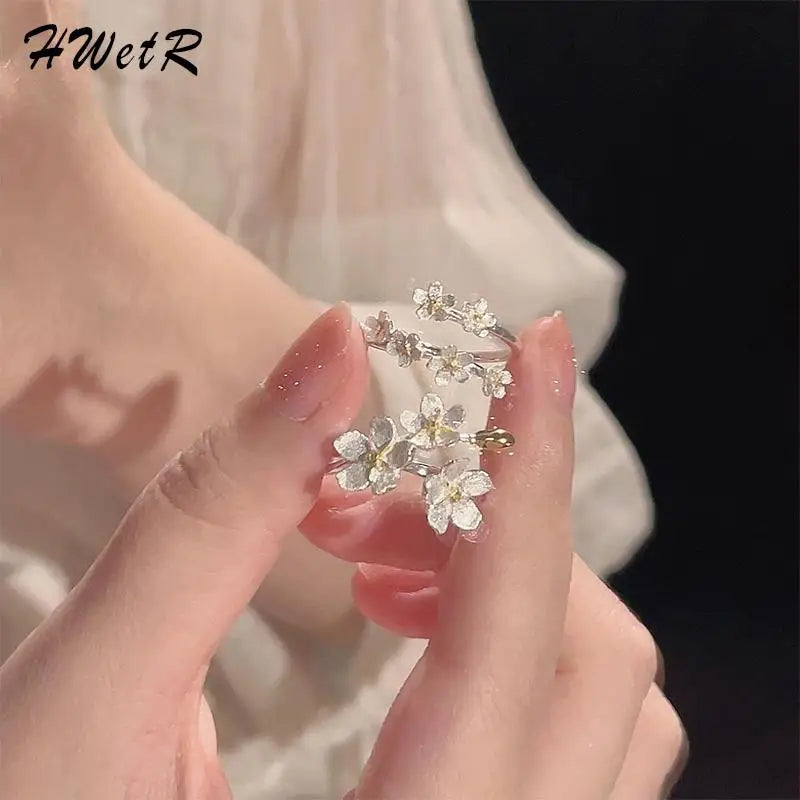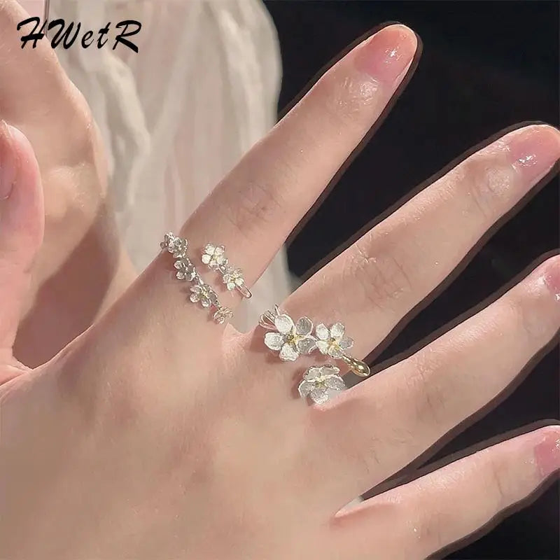 Unique Delicate Flower Opening Adjustable Rings For Women Silver Color Minimalist Finger Ring Engagement Jewelry Female Gift