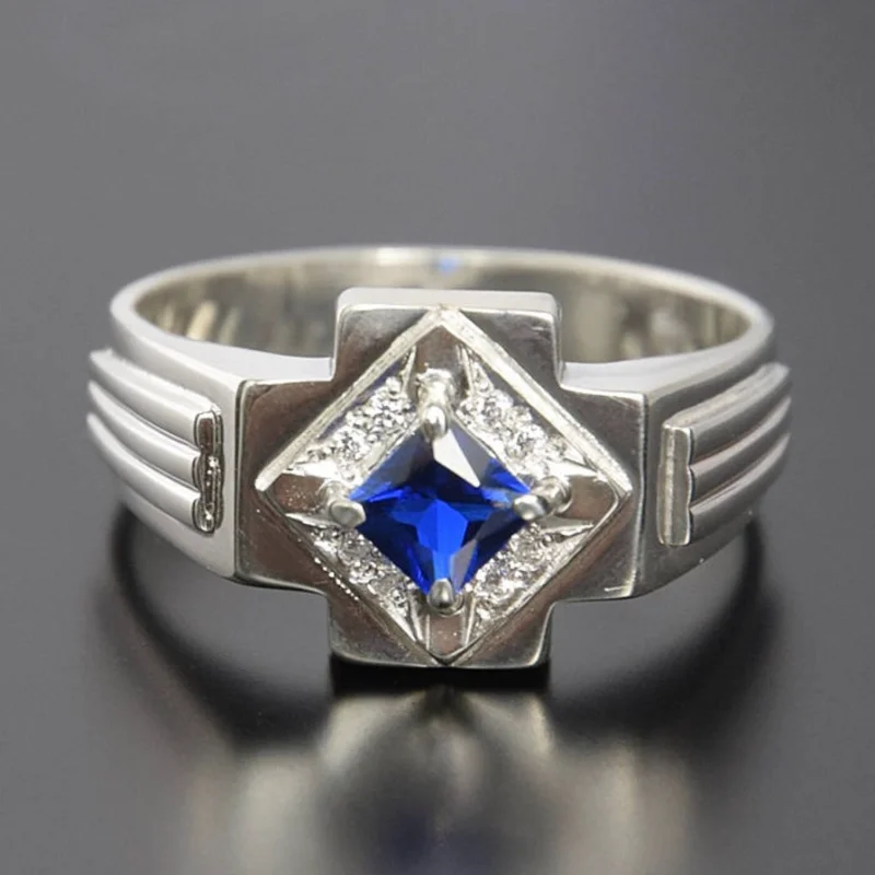 Vintage Gothic Blue Gemstone Diamond Cross for Men and Women's Rings Halloween Fashion Punk Personalized Party Gift Jewelry